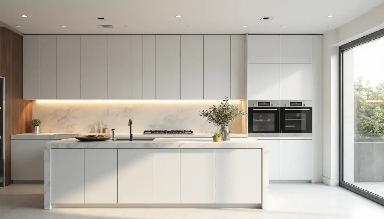 Una cocina blanca moderna y elegante combina durabilidad, practicidad y estética. Los elementos clave incluyen la elección de materiales resistentes y acabados suaves, un diseño limpio que favorezca la organización, una iluminación que realce el espacio y detalles tecnológicos que aumenten la comodidad.
