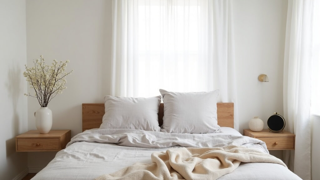 Puro y luminoso. Rompe con madera miel y lino natural para evitar frialdad en la decoración de dormitorios.